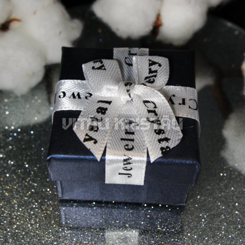 Dāvanu kaste gredzenam 5 x 5 x 3 cm kartona zilā ar baltu bantīti 1 gb