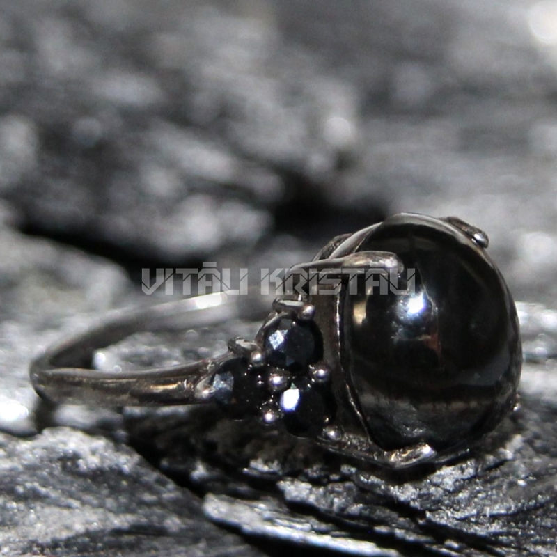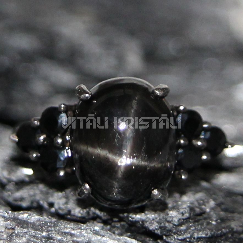 Diopsīds Zvaigžņu, melnais špinelis gredzens sudrabs izmērs 17.2