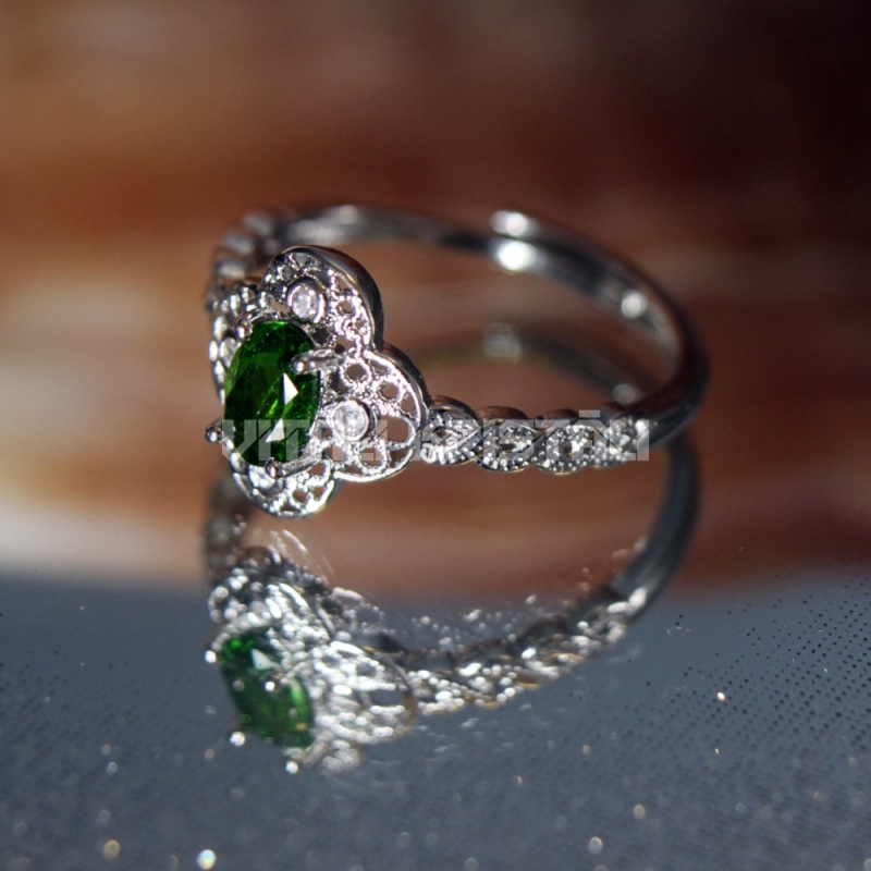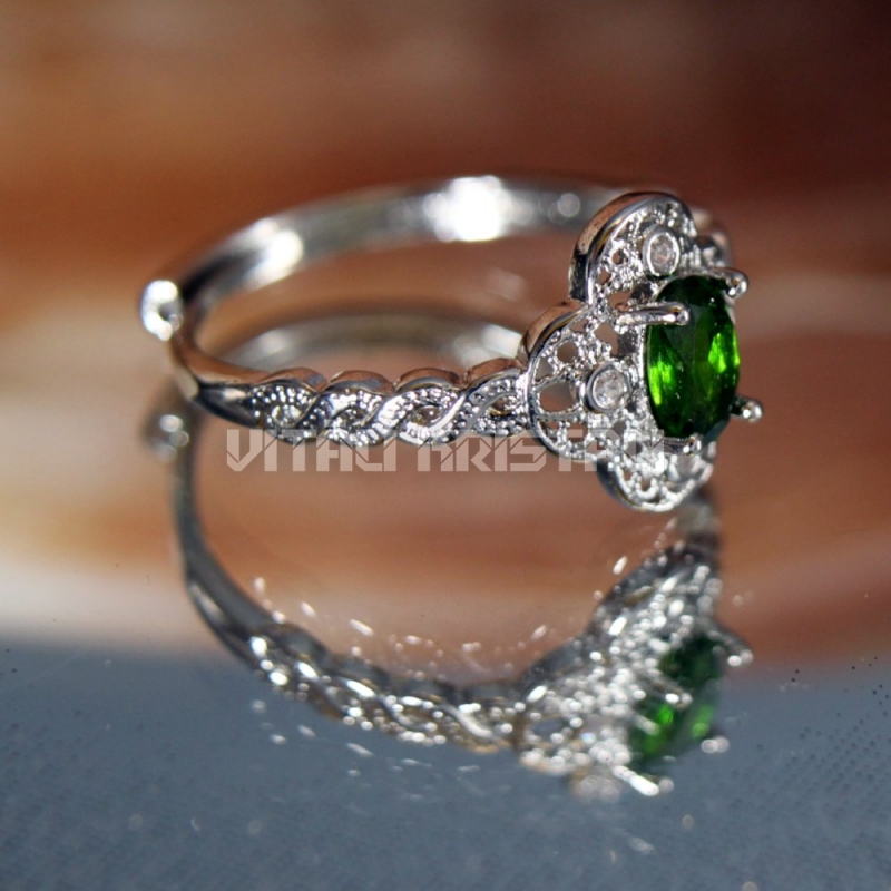 Hromdiopsīds 6 x 4 mm gredzens regulējams izmērs