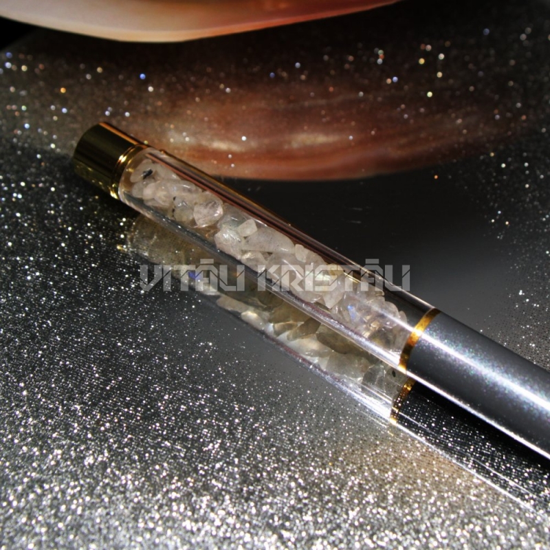 Labradorīts pildspalva ar kristāliem 14 cm 1 gb