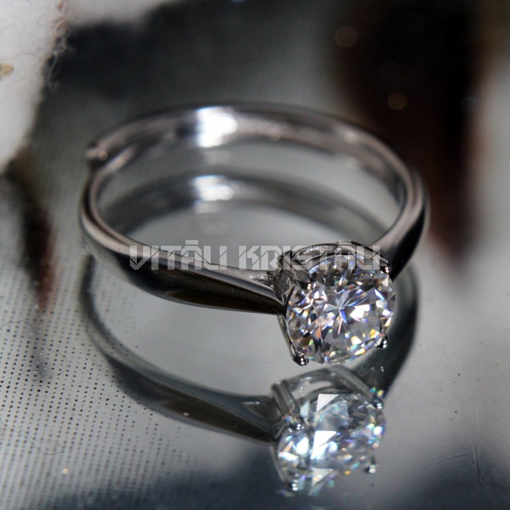 Moisanīts 1 ct. gredzens sudrabs reguējams izmērs