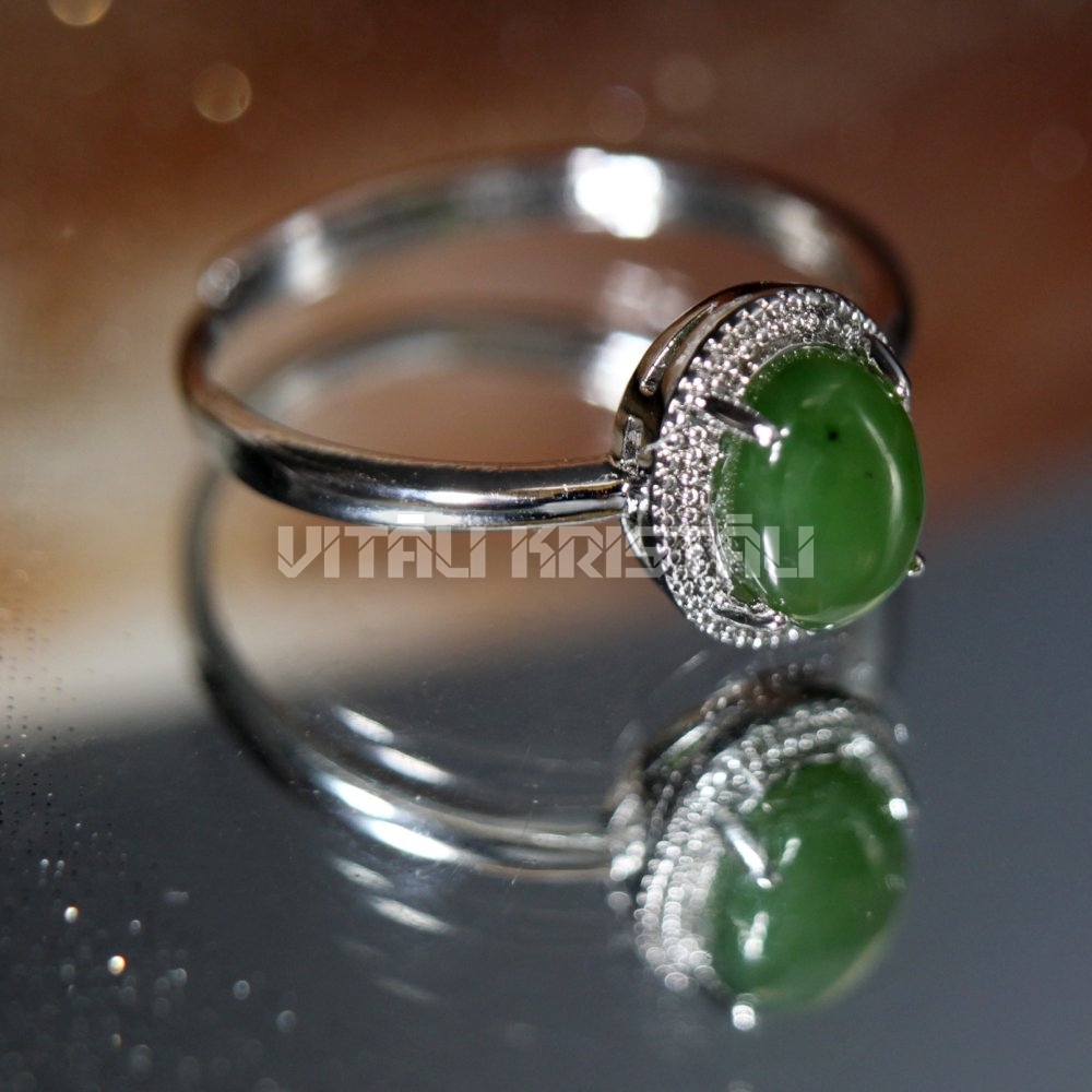 Nefrīts 8 x 6 mm gredzens regulējams izmērs