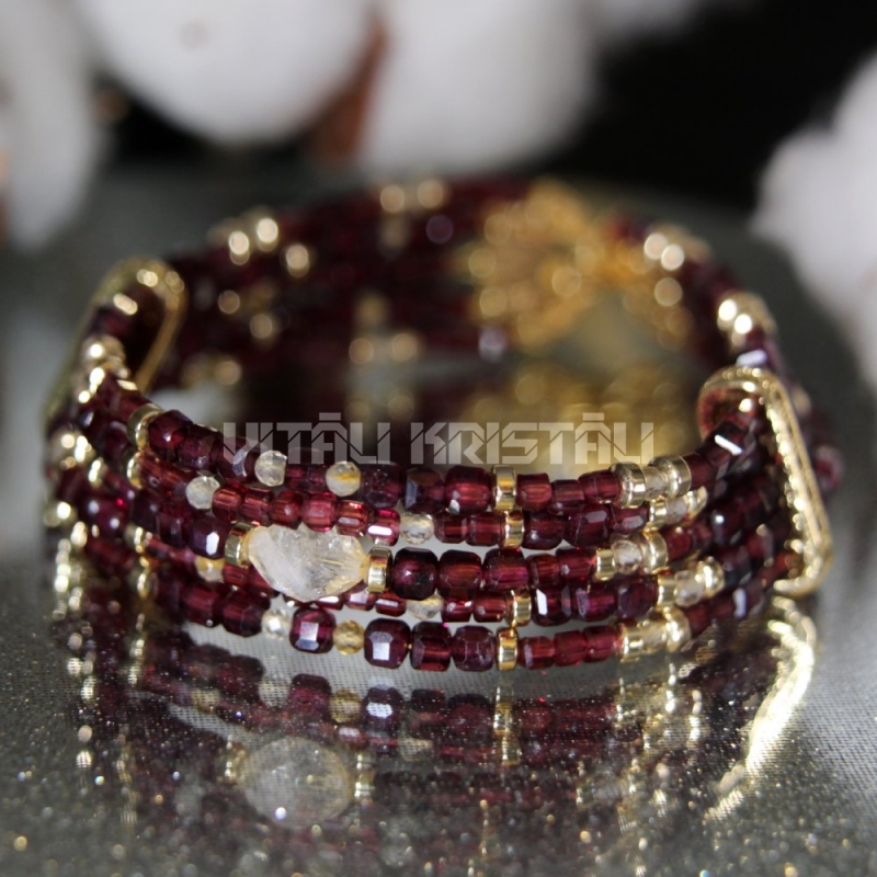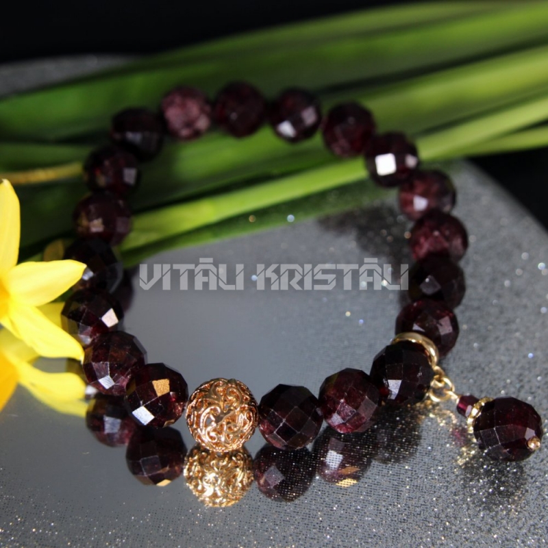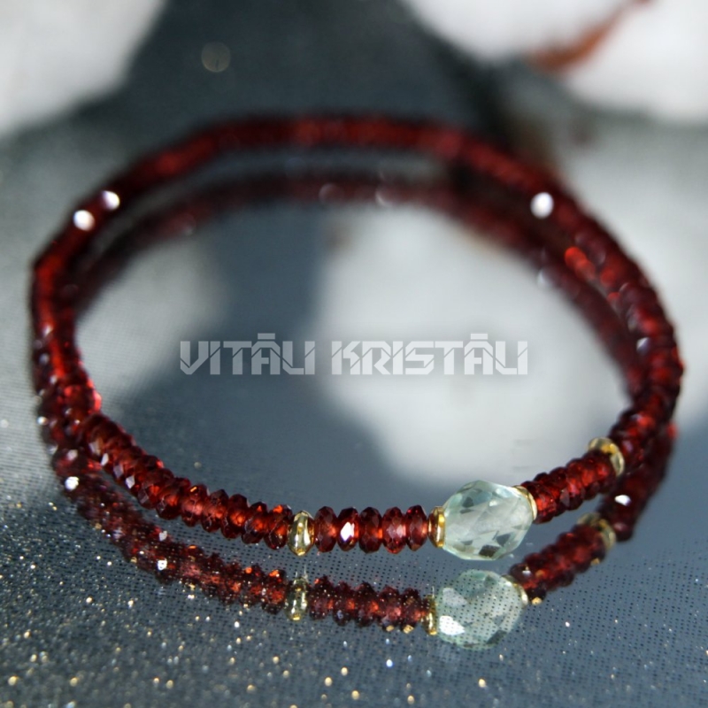 Granāts almandīns 4 x 2 mm, dzintars 5 mm aproce izmērs 17