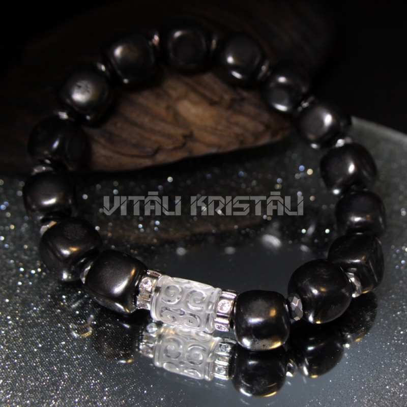 Šungīts 10 mm, kalnu kristāls 13 x 10 mm aproce izmērs 18