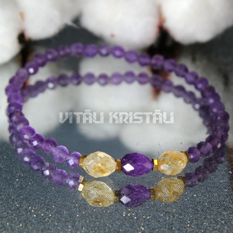 Ametists 4 mm, citrīns 8 x 6 mm aproce izmērs 16