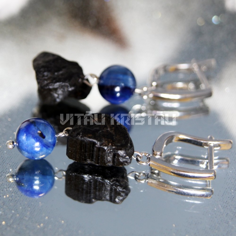 Turmalīns melnais šerls, kianīts auskari 4 x 1 cm