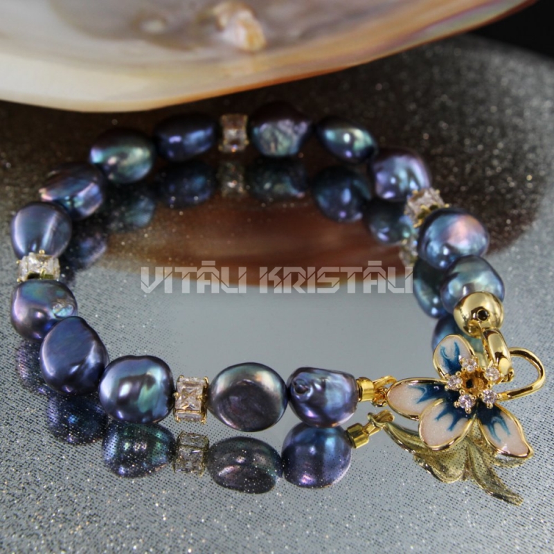 Pērle saldūdens tumšā varavīksnes krāsa 9 -10 mm aproce izmērs 18