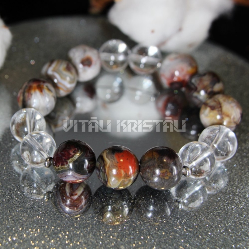 Ahāts Meksikas mežģiņu Crazy Lace 14 mm, kalnu kristāls 12 mm aproce izmērs 17