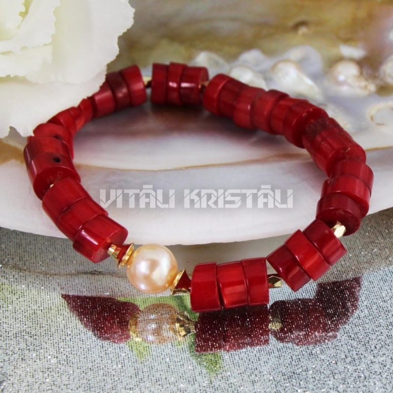 Korallis 5 x 9 mm, pērle 10 mm aproce izmērs 17