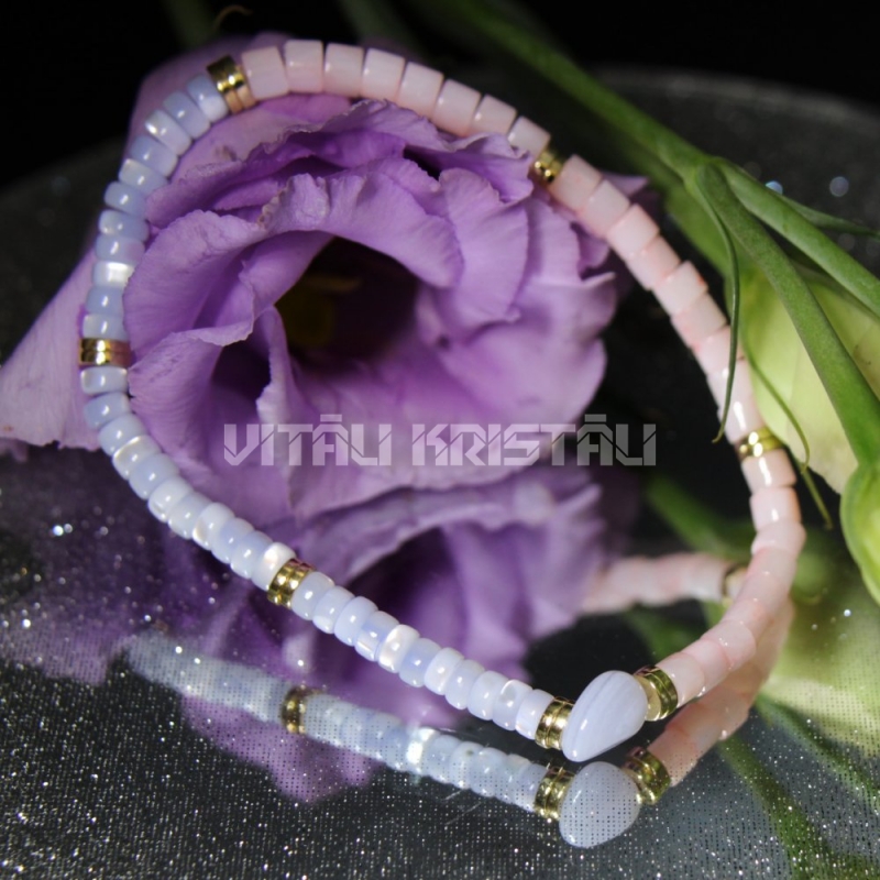 Perlamutrs rozā, zils 4 x 3 mm, zils ahāts aproce izmērs 16