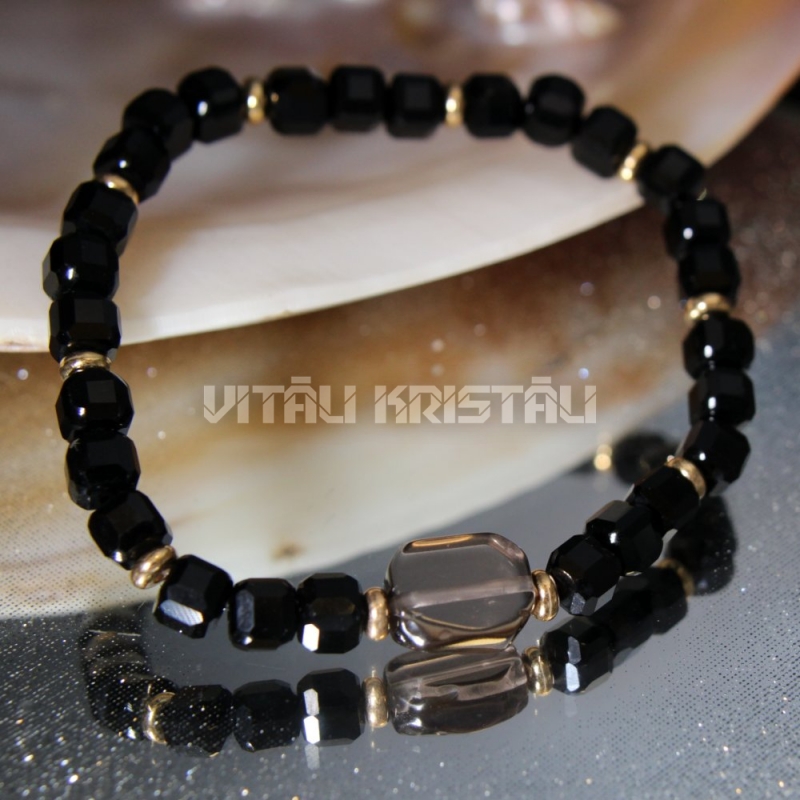 Ahāts melns 5 mm, dūmu kvarcs 11 x 9 mm aproce izmērs 15