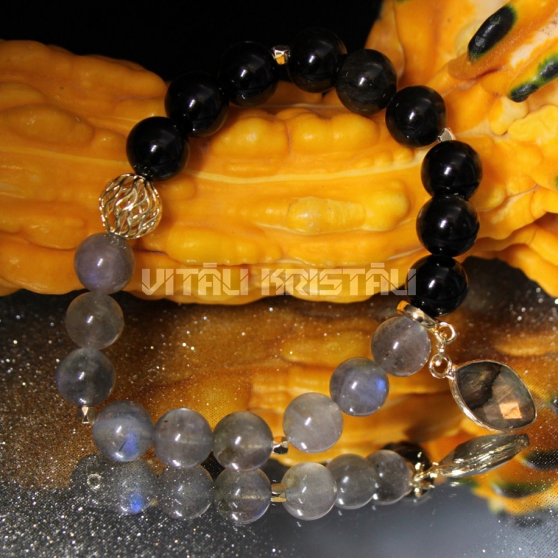 Obsidiāns zeltains, labradorīts 10 mm aproce izmērs 16