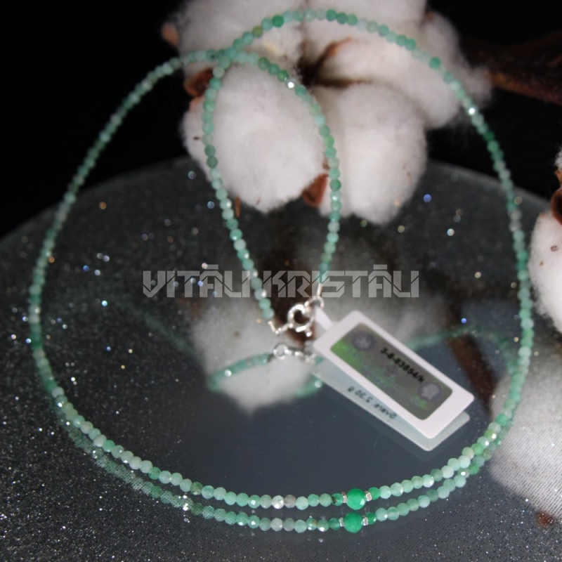 Smaragds 2 mm, sudrabs kaklarota 40 cm