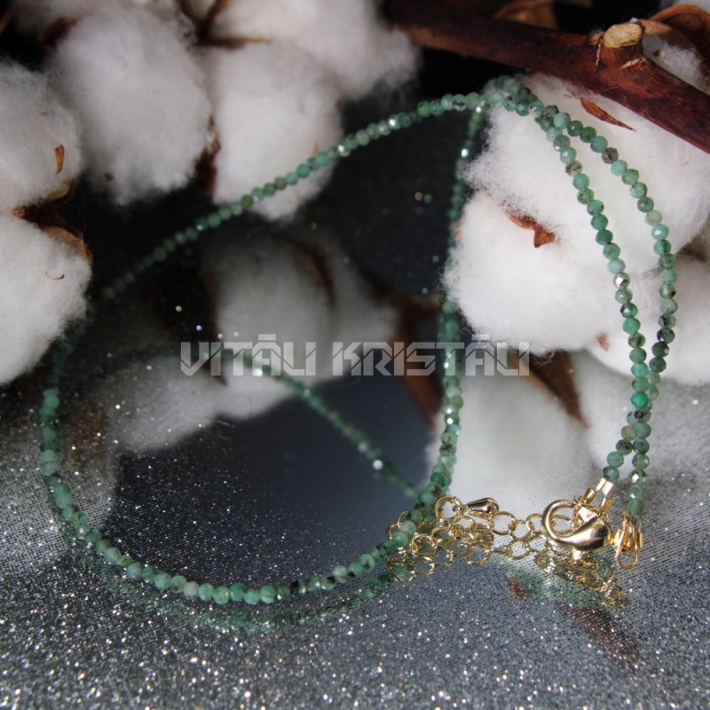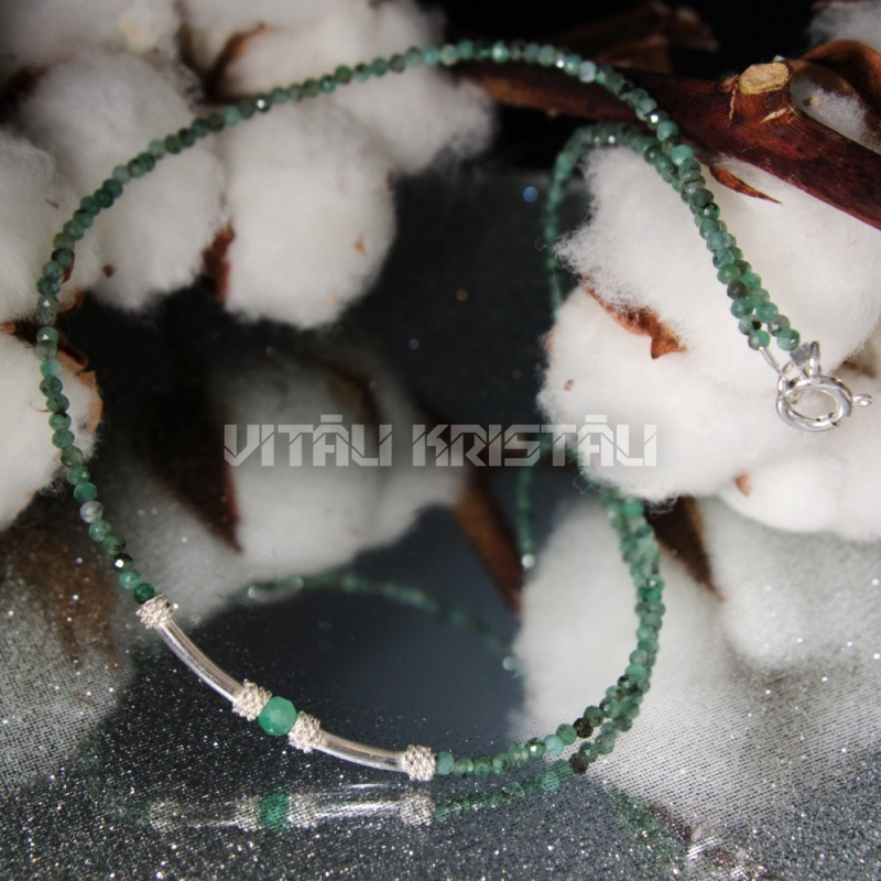 Smaragds 2 mm, sudrabs čokers 35 cm