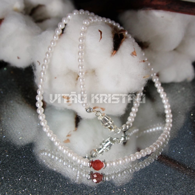 Pērle imitācija 3 mm, špinelis sarkans 5 mm kaklarota 36.5 cm