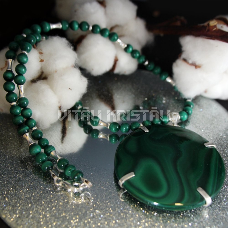 Malahīts 6 mm, sudrabs kaklarota 51 cm, kulons - 6 x 5.7 cm