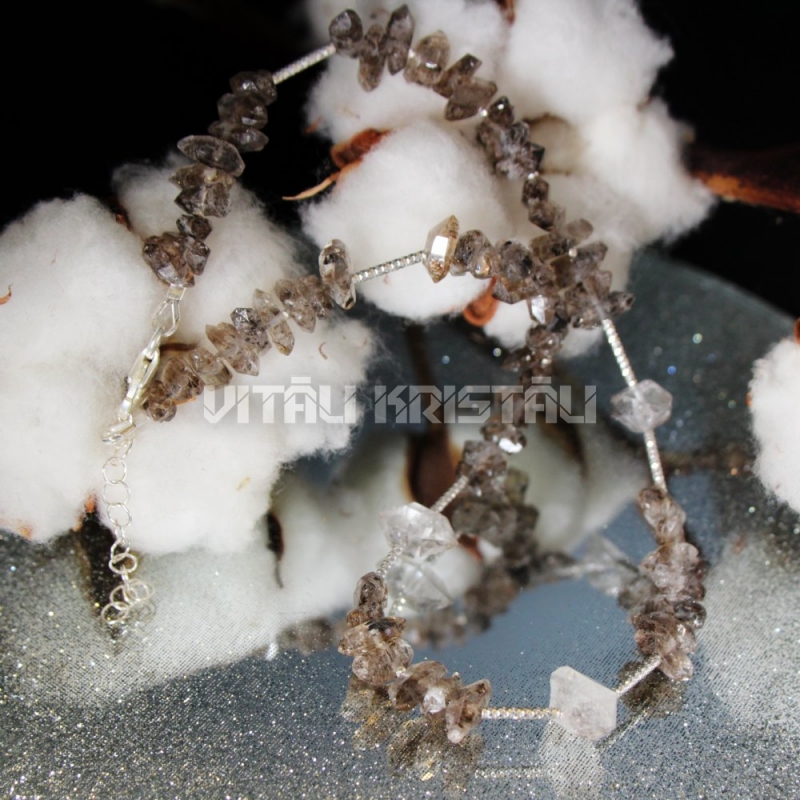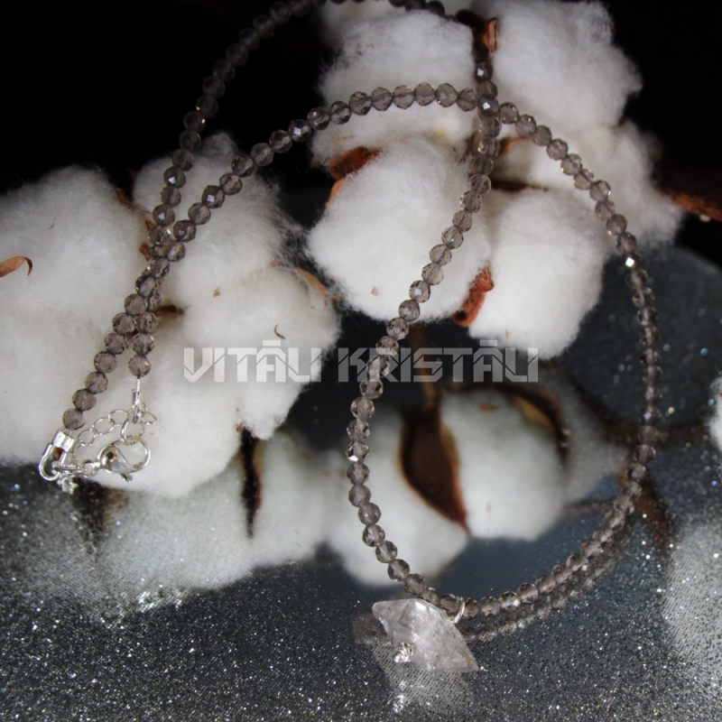 Dūmu kvarcs kaklarota 40 + 4 cm un herkimera dimants kulons 1 x 1.7 cm