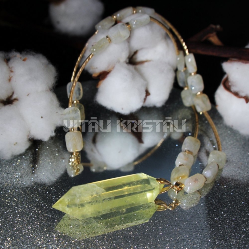 Kalnu kristāls kaklarota 42 + 5 cm un saules kvarcs kulons 3 x 3 cm