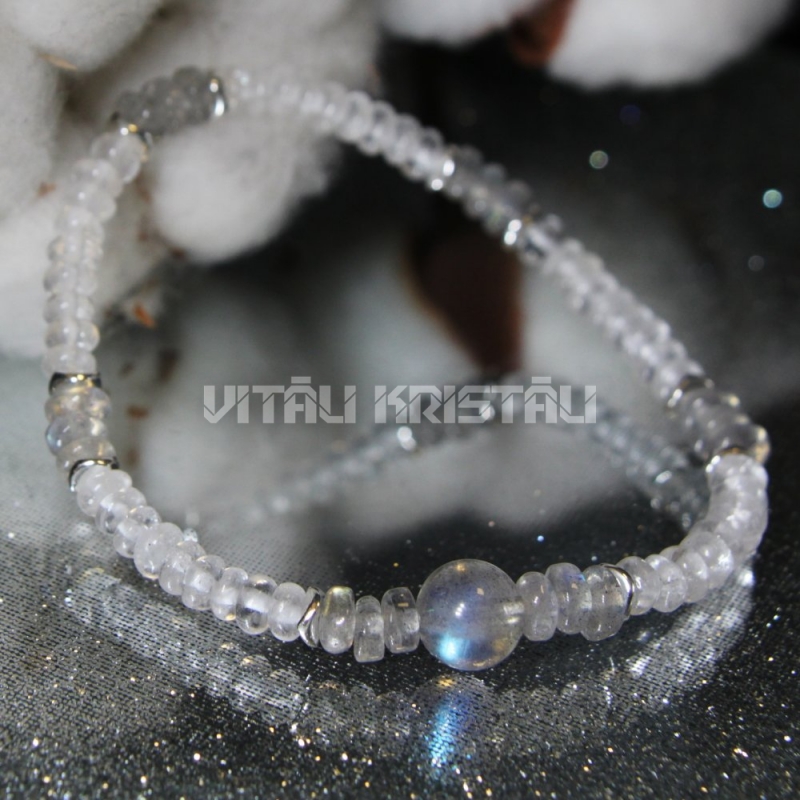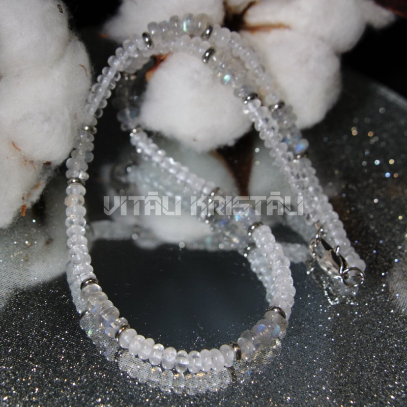 Labrodorīts, kalnu kristāls 4 x 2 mm aproce izmērs 15