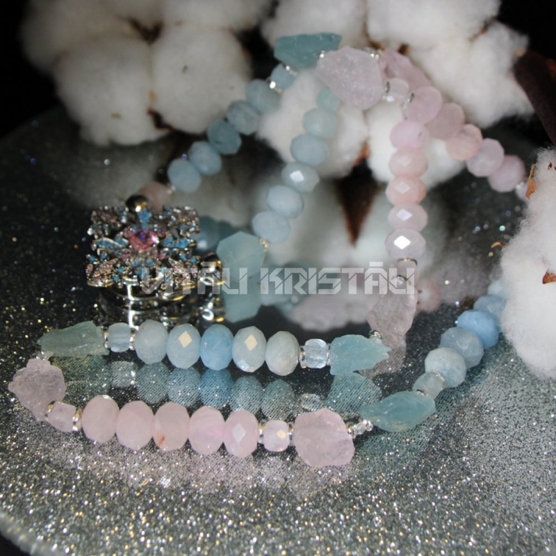 Berils - morganīts, akvamarīns kaklarota 48 cm