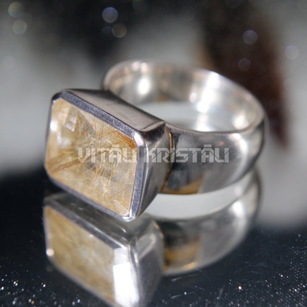 Rutilētais kvarcs gredzens sudrabs izmērs 18