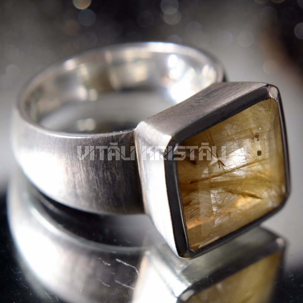 Rutilētais kvarcs gredzens sudrabs izmērs 18