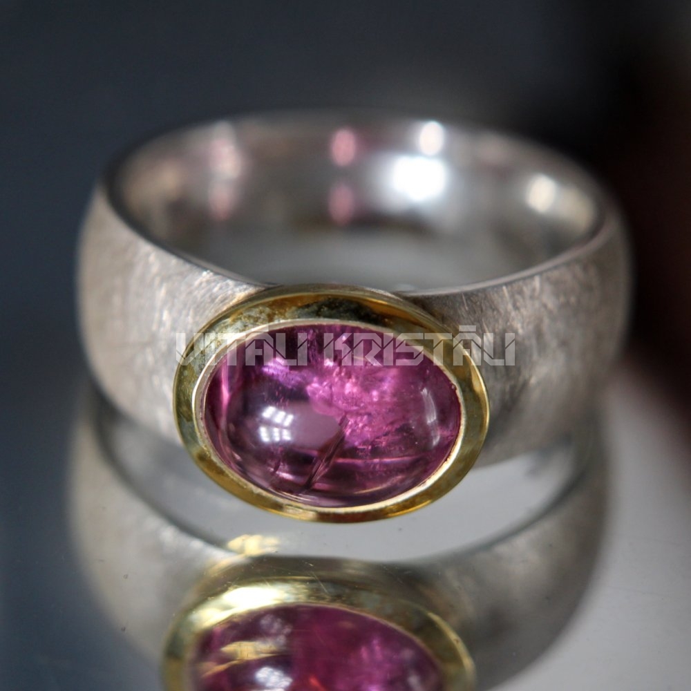 Turmalīns gredzens sudrabs apzeltīts izmērs 17