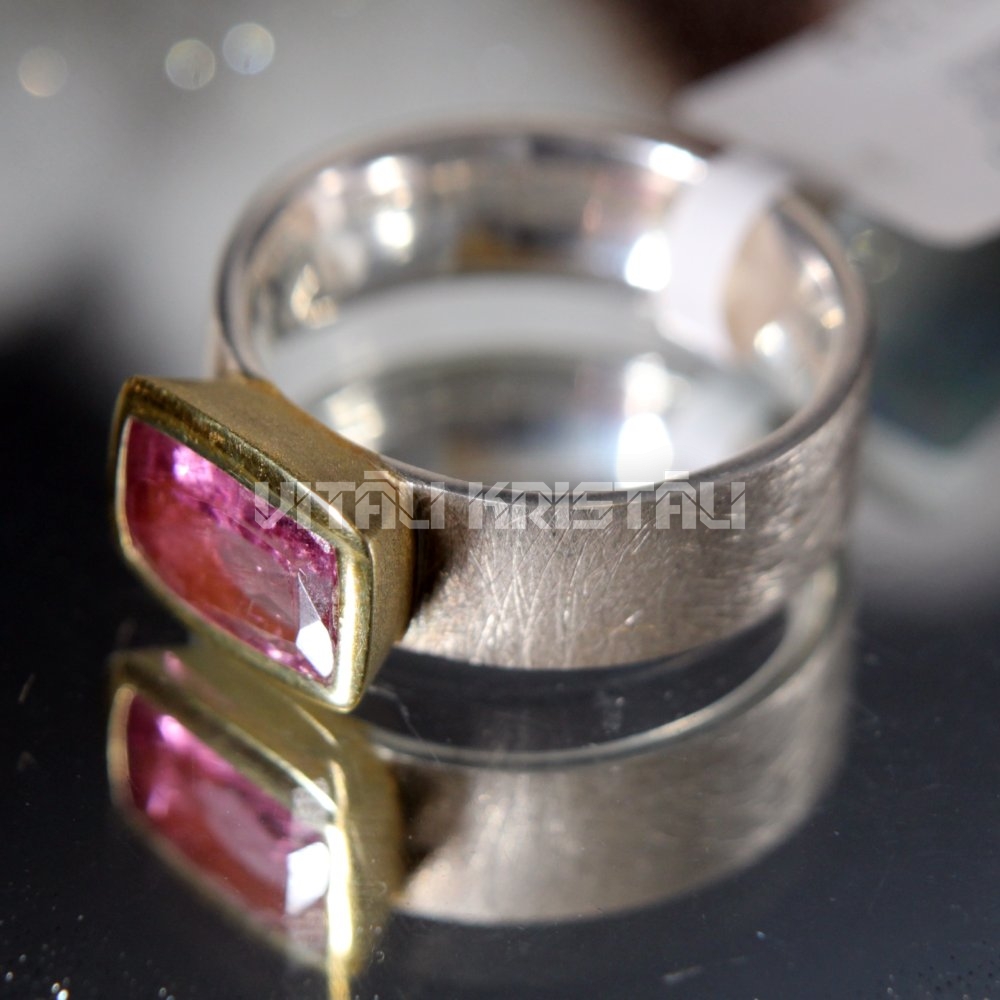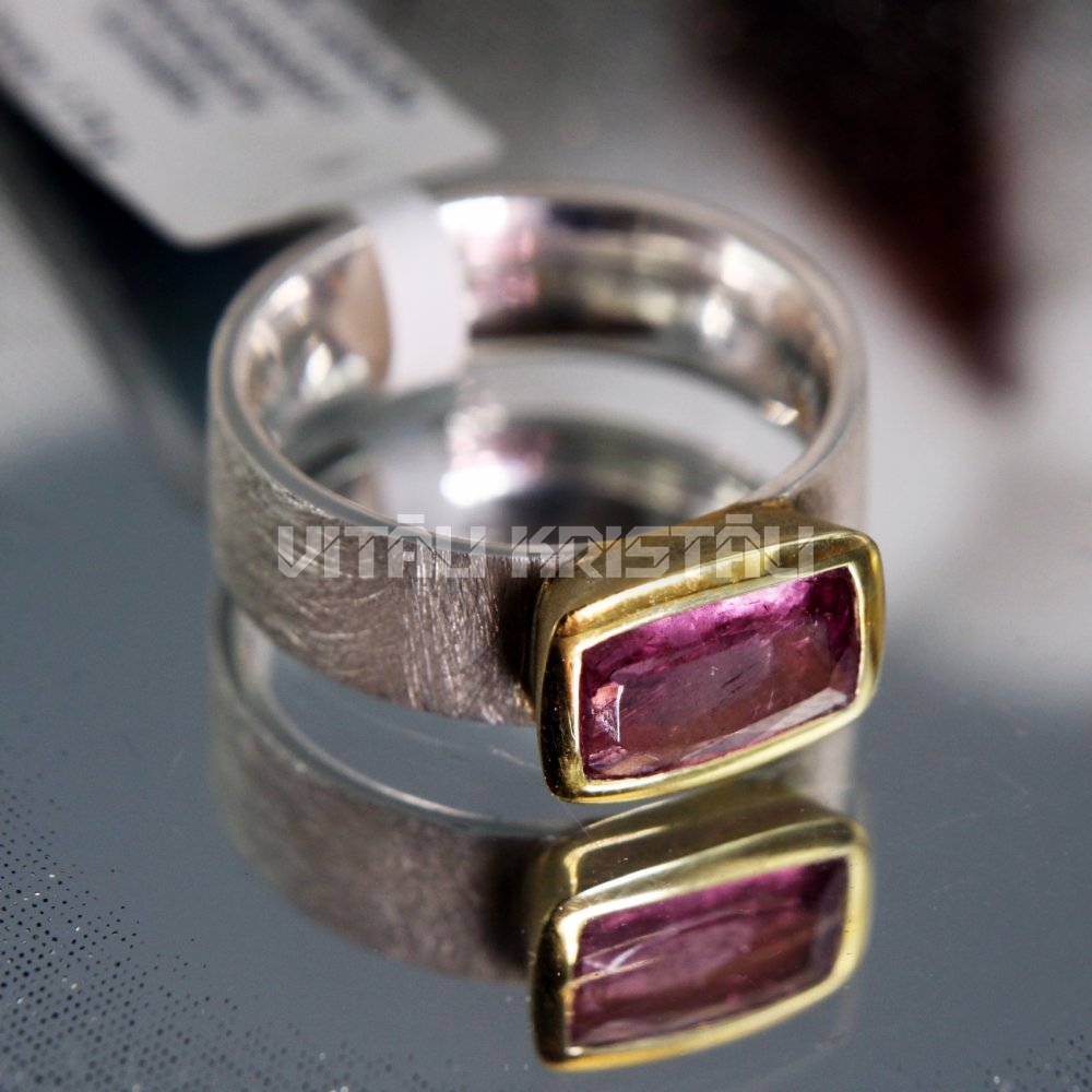 Turmalīns gredzens sudrabs apzeltīts izmērs 17.5
