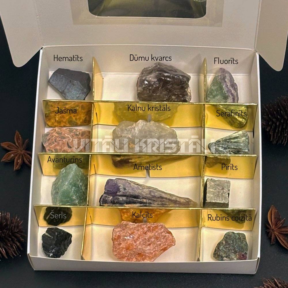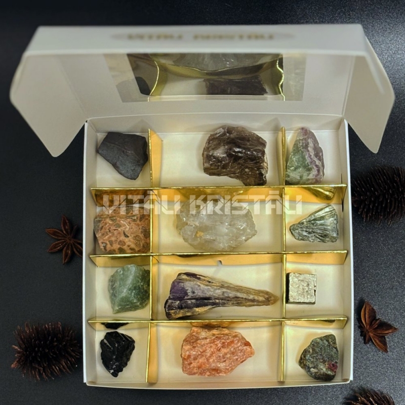 Адвент календарь - 12 минералов, в коробке 15 x 15 x 3.5 см