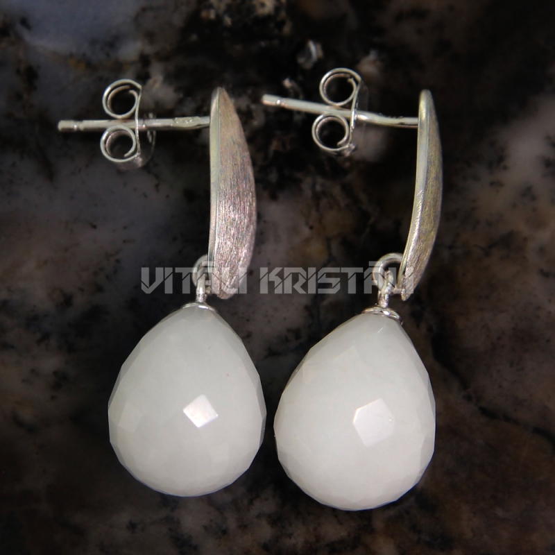 Кахолонг серьги гвоздики серебро 27 мм x 10 мм