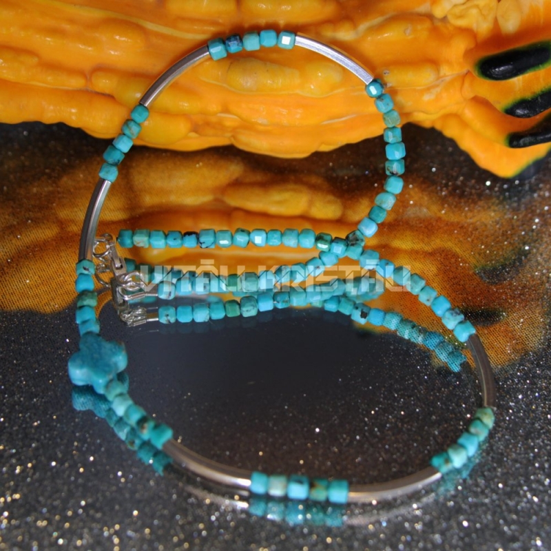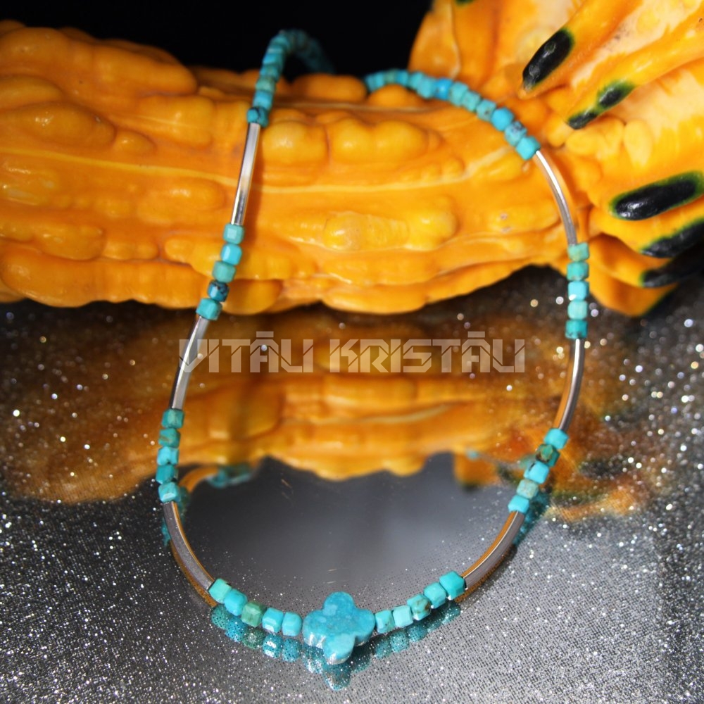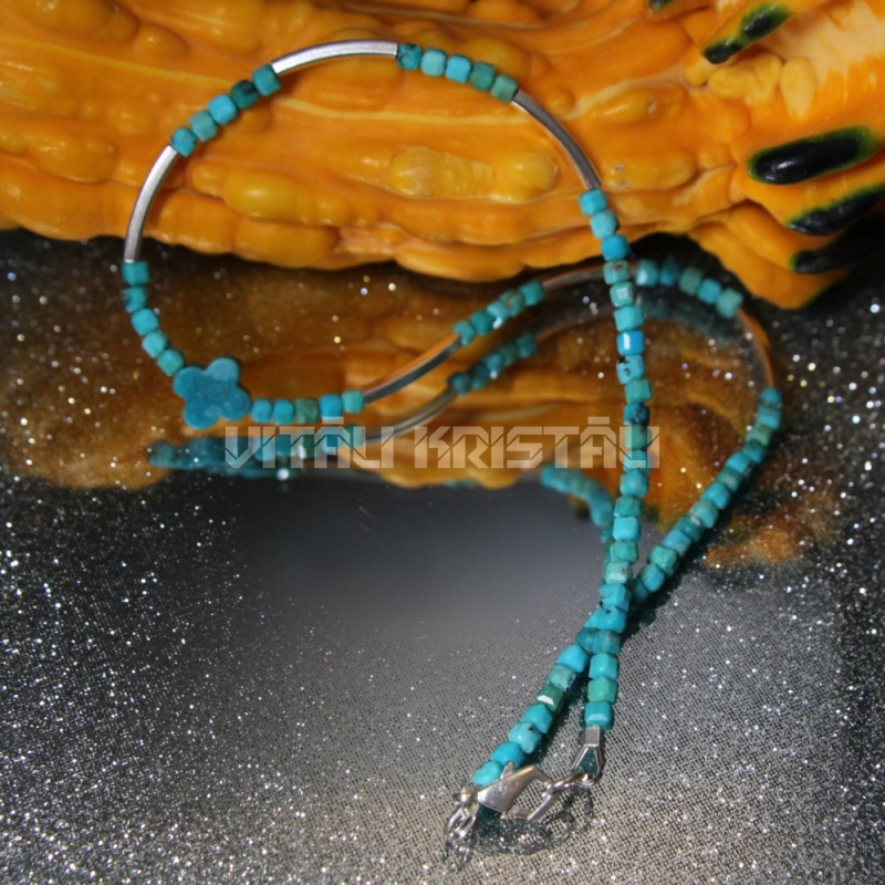 Аквамарин 3 мм и голубой кружевной агат 2 x 2.5 см ожерелье длина 42 см