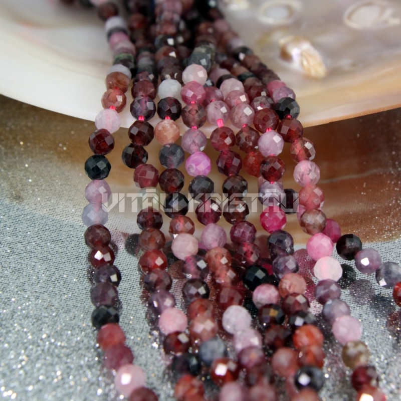 Гранат родолит бусины граненые 2.2 x 2.2 мм нить 19.5 см