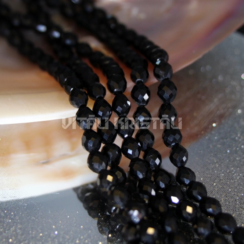 Шпинель черная бусины граненые 4 x 4 мм нить 19.5 см