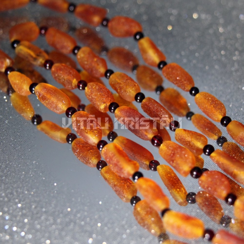 Янтарь бусины 6 - 8 мм свободной формы темно желтый нить 19 см