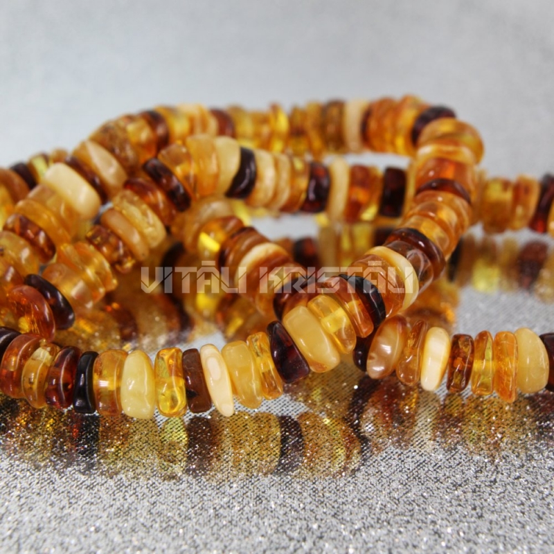 Янтарь бусины 7 - 9 x 2 - 3 мм шайба светло + темно желтый нить 19 см