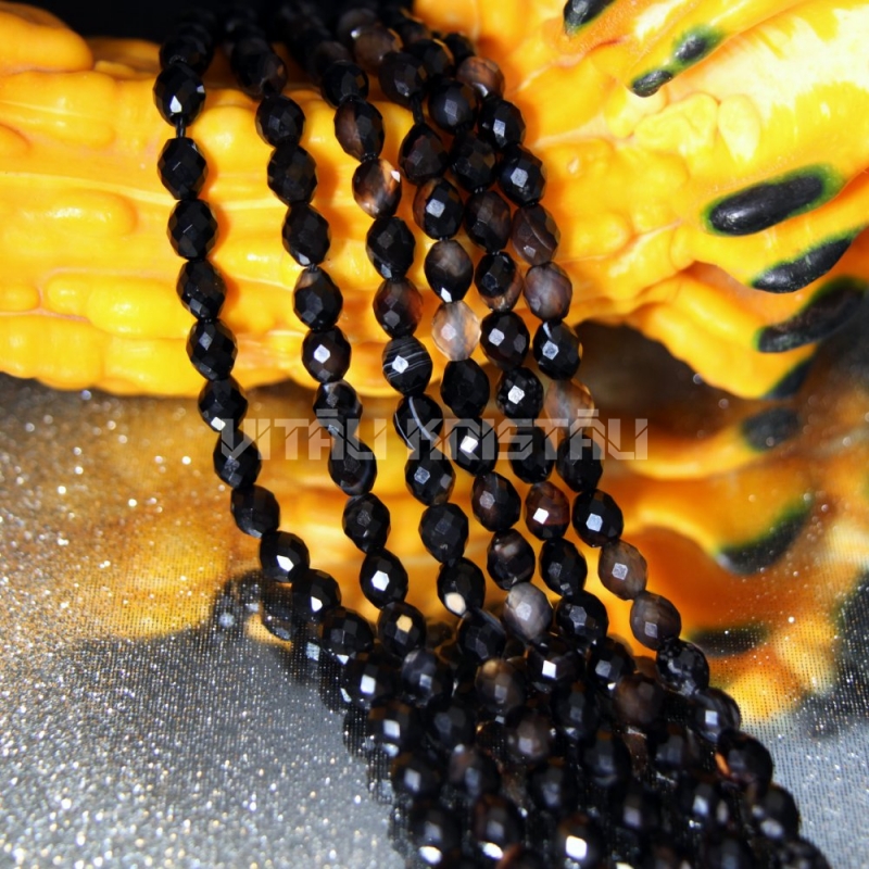 Агат черный бусины граненые 5 x 6 мм нить 18 см