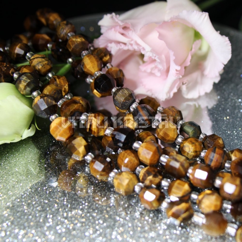 Тигровый глаз бусины граненые 8 x 8 мм нить 18 см 18 бусин