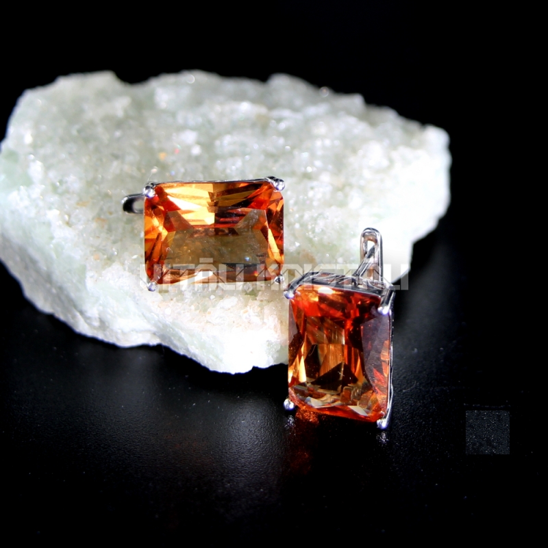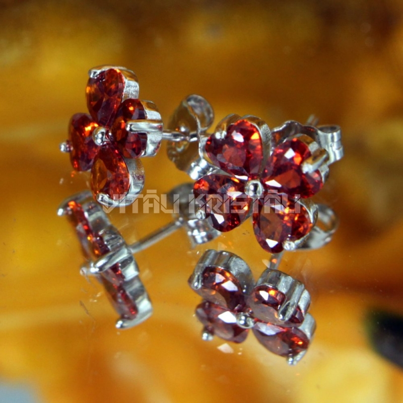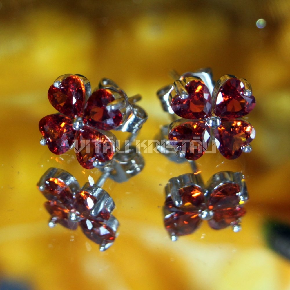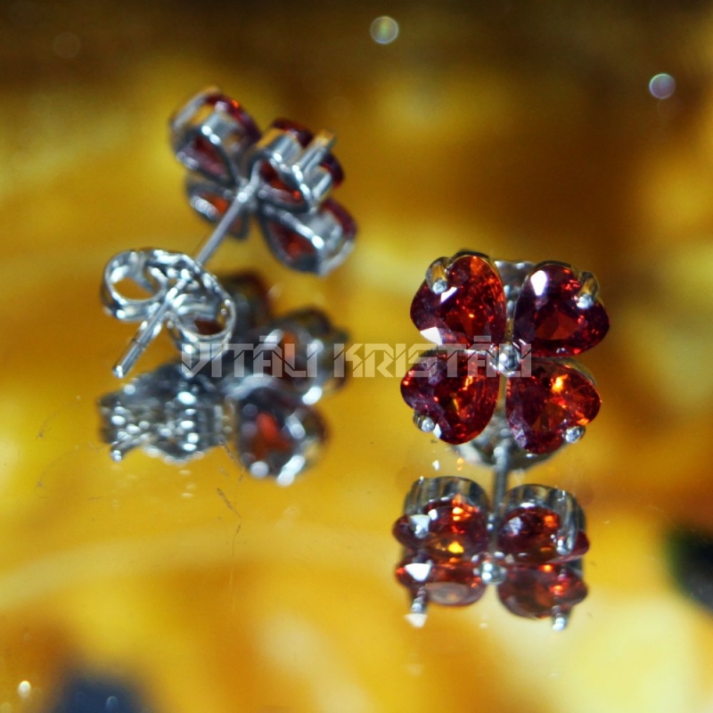 Гранат гессонит серьги гвоздики серебро 9 x 9 мм