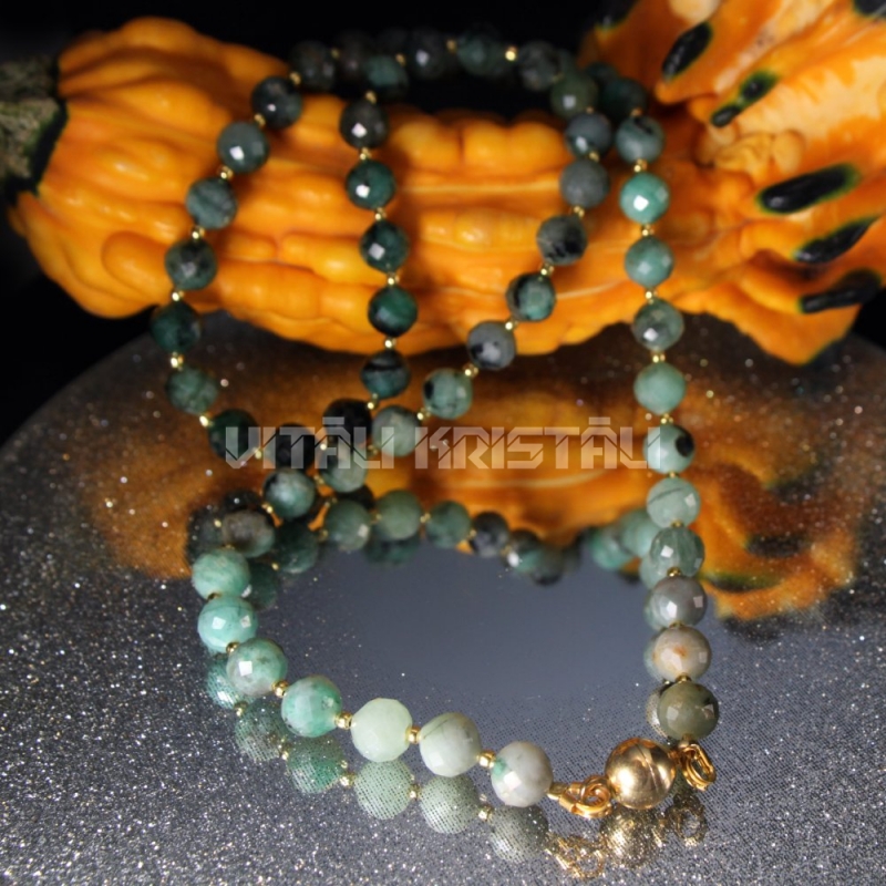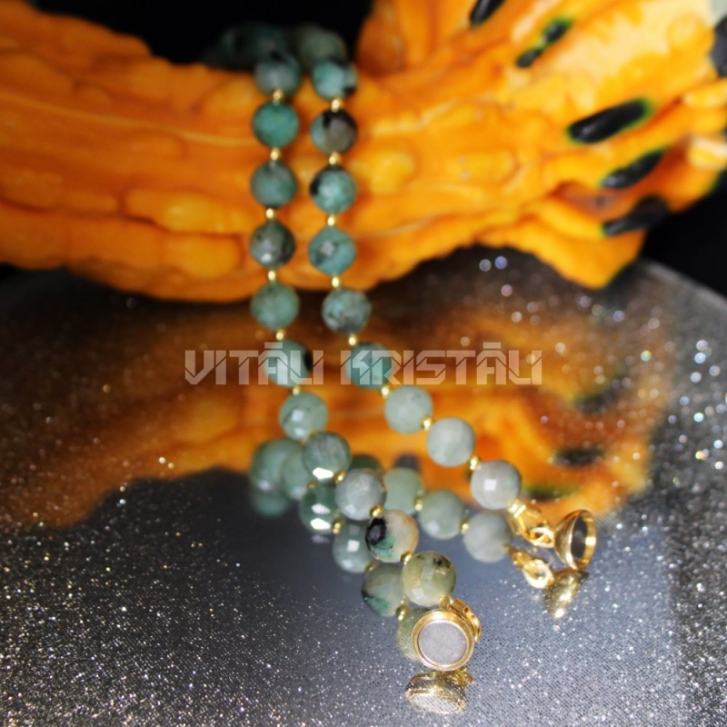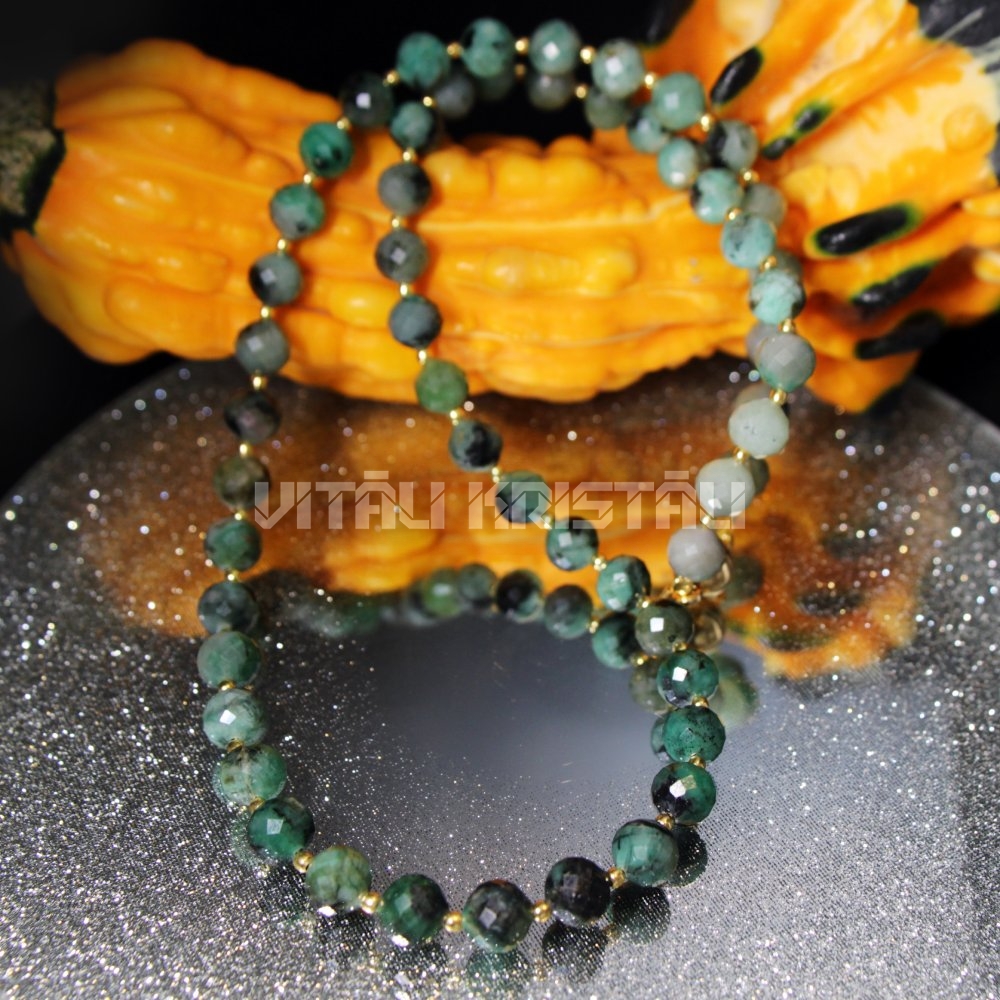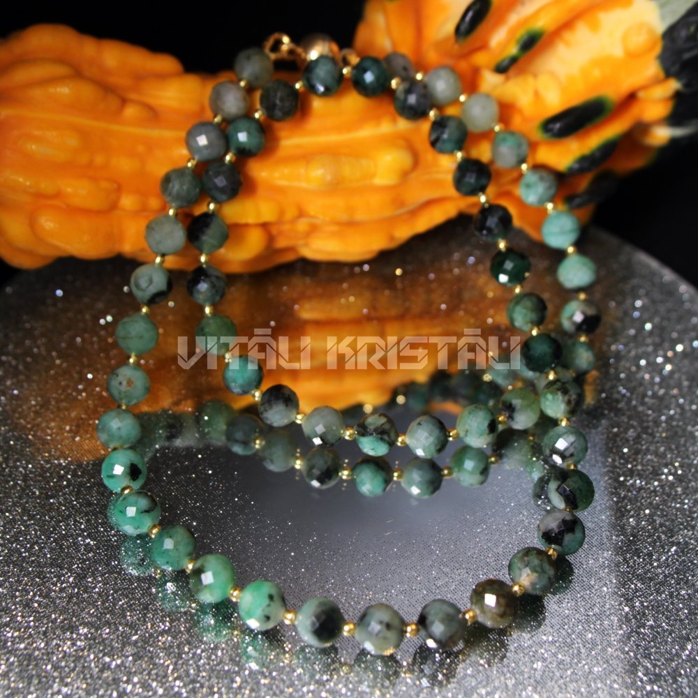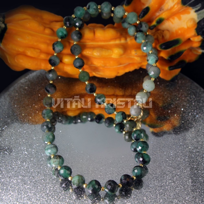 Изумруд 7 мм бусы серебро с позолотой 50 см