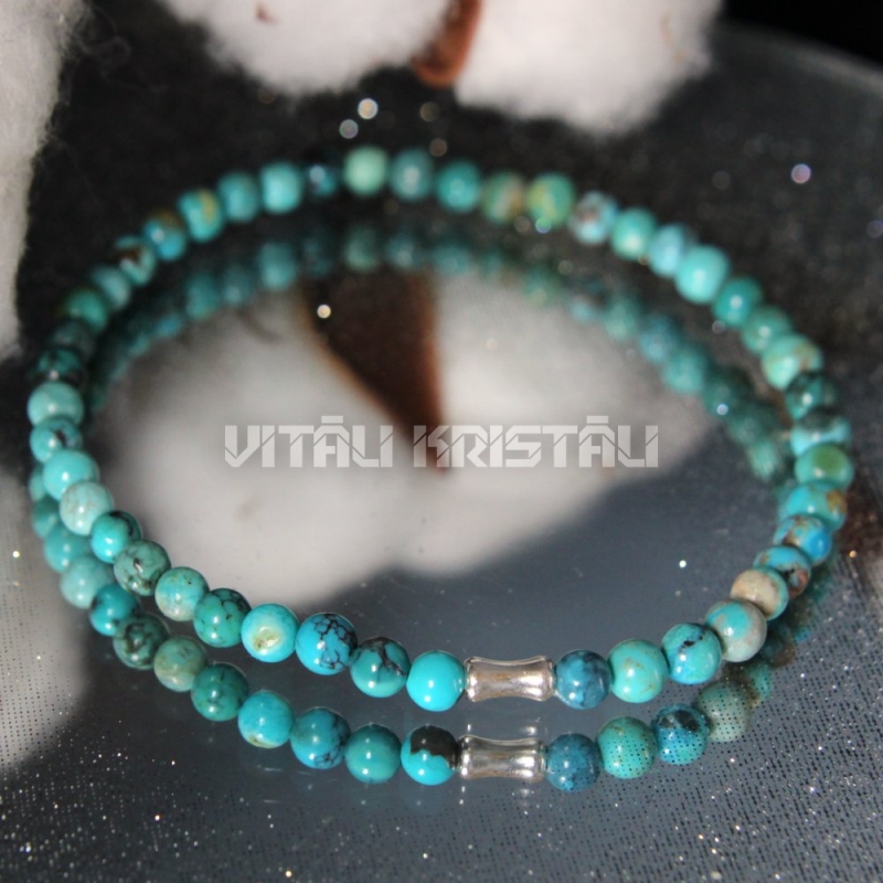 Бирюза 4 мм серебро браслет размер 17