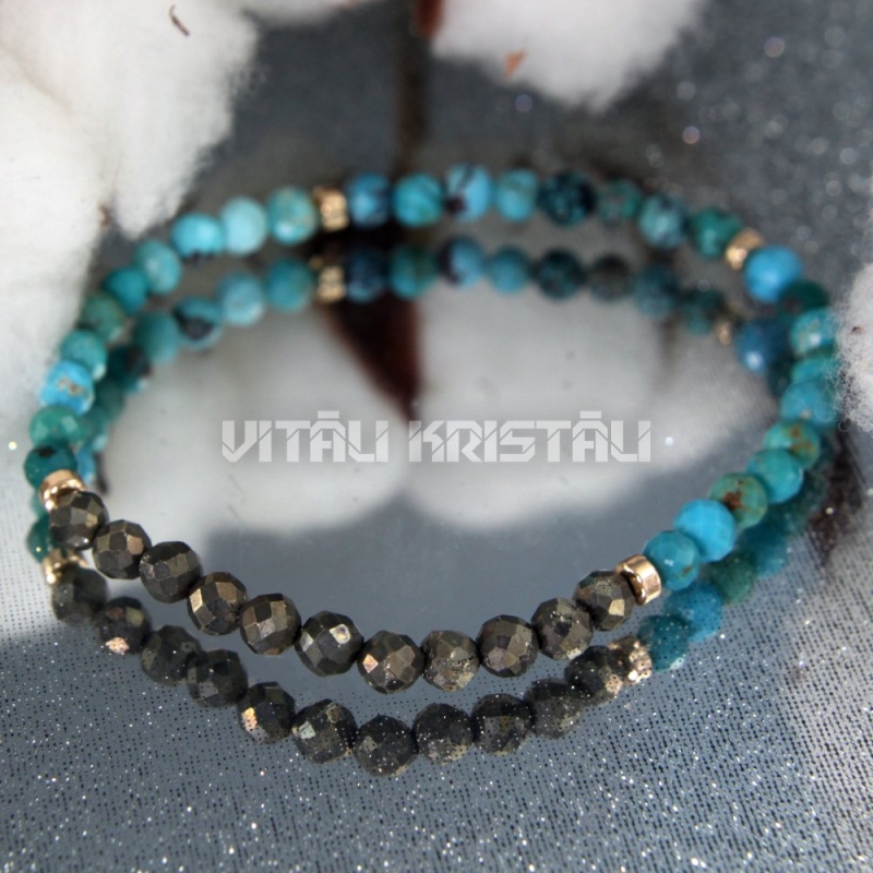Бирюза, пирит 4 мм браслет размер 15