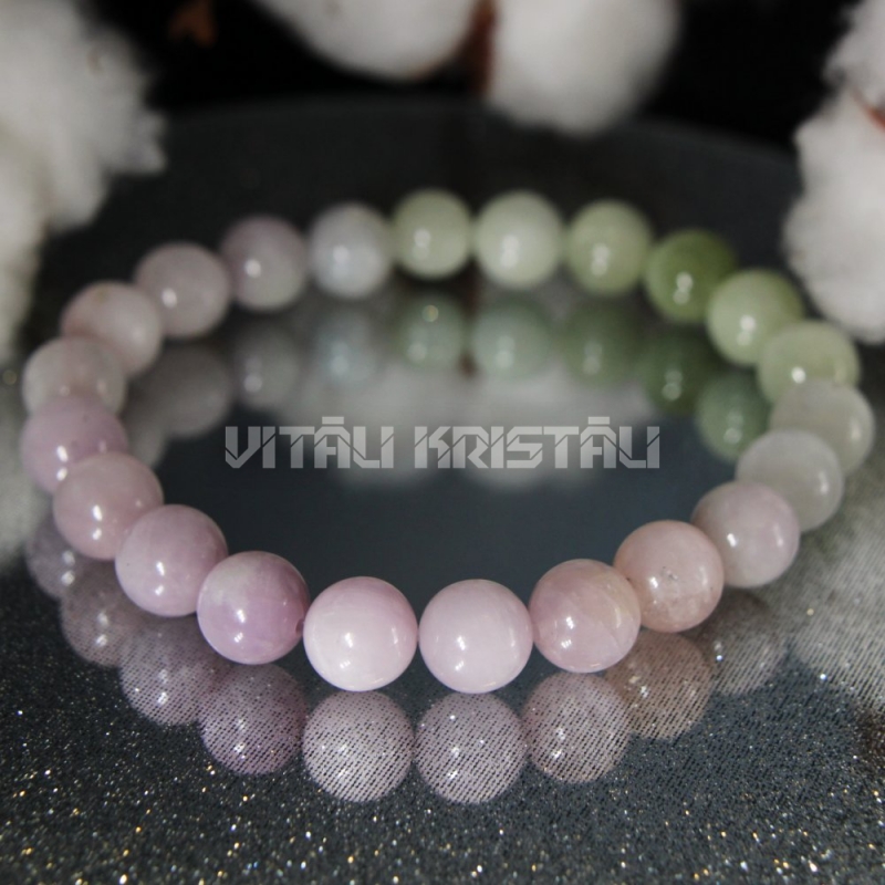 Кунцит браслет 9.5 мм размер 17