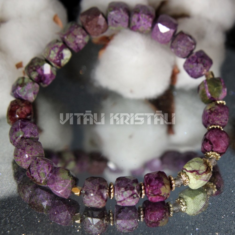 Атлантисит стихтит в серпентине 8 x 8 мм браслет размер 17