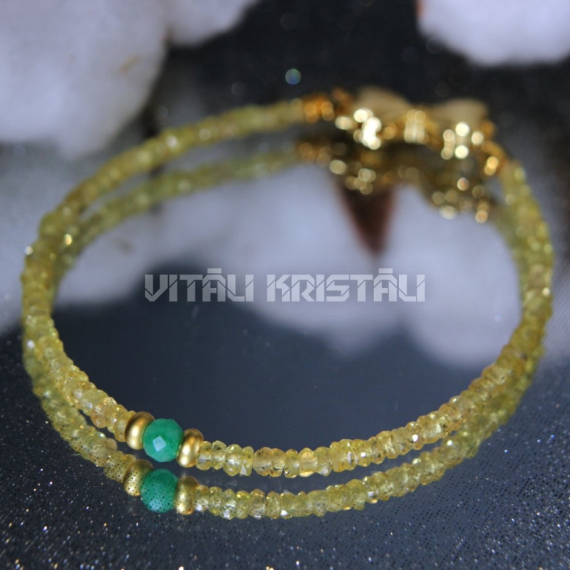 Сапфир желтый 3 мм, изумруд 4 мм браслет размер 16