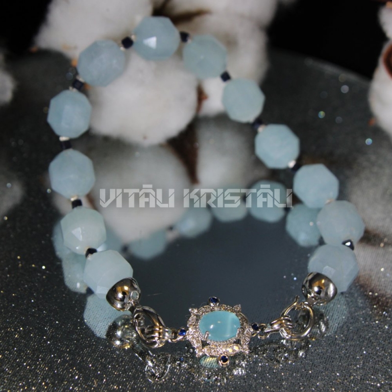 Аквамарин 9 x 10 мм, сапфир 2 мм браслет размер 18