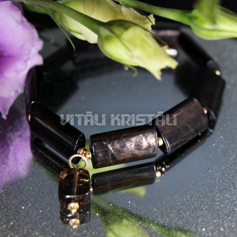 Гиперстен 21 x 12, дымчатый кварц 11 x 9 мм браслет размер 19
