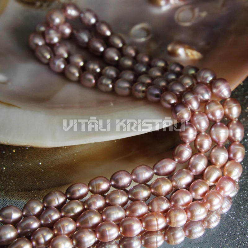 Pērle rozā pērlītes 6 x 8 mm virtene 17.5 cm