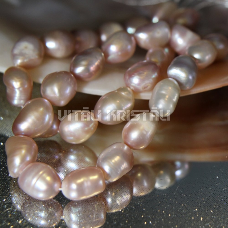 Pērle baroka rozā, krēmkrāsas pērlītes 12 x 8 mm virtene 18 cm