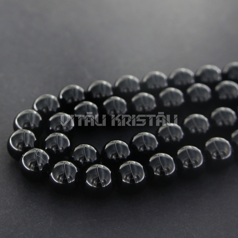 Obsidiāns varavīksnes pērlītes 12 mm virtene 19 cm