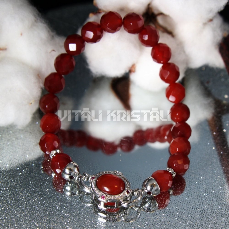 Karneols 10 x 6 mm, kalnu kristāls 2 mm aproce izmērs 18